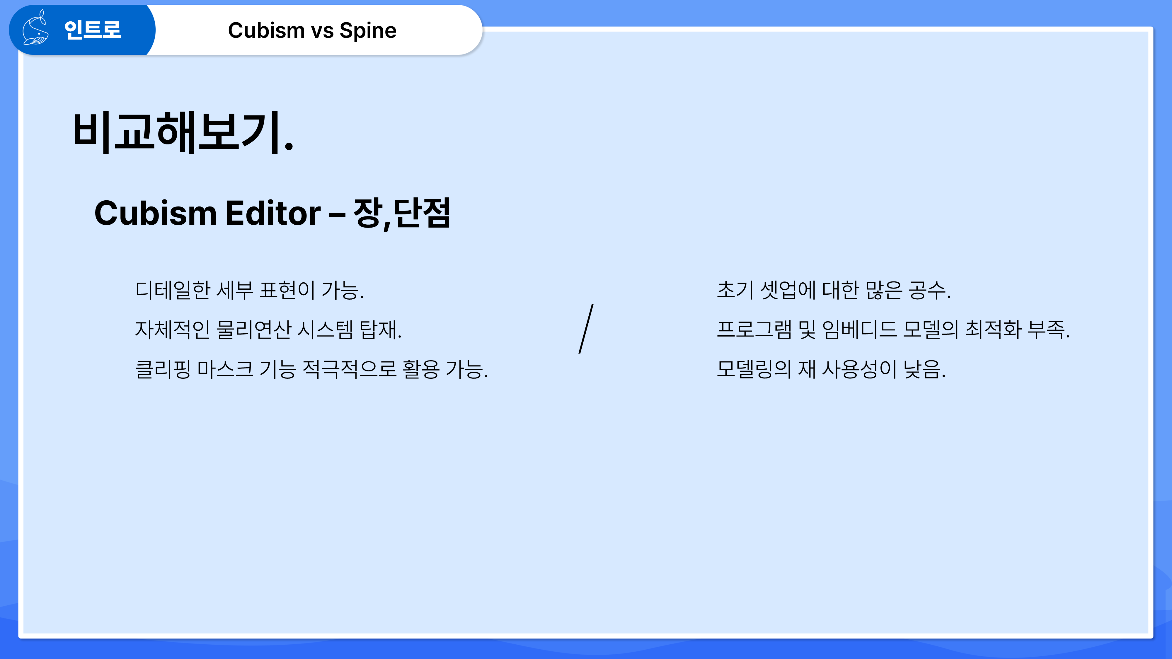 2D 애니메이팅 솔루션은 다양한 방법이 있지만 대표적으로는 이번 강의에서 알려드리는 Live2D Cubism 와 Spine2D가 있습니다.