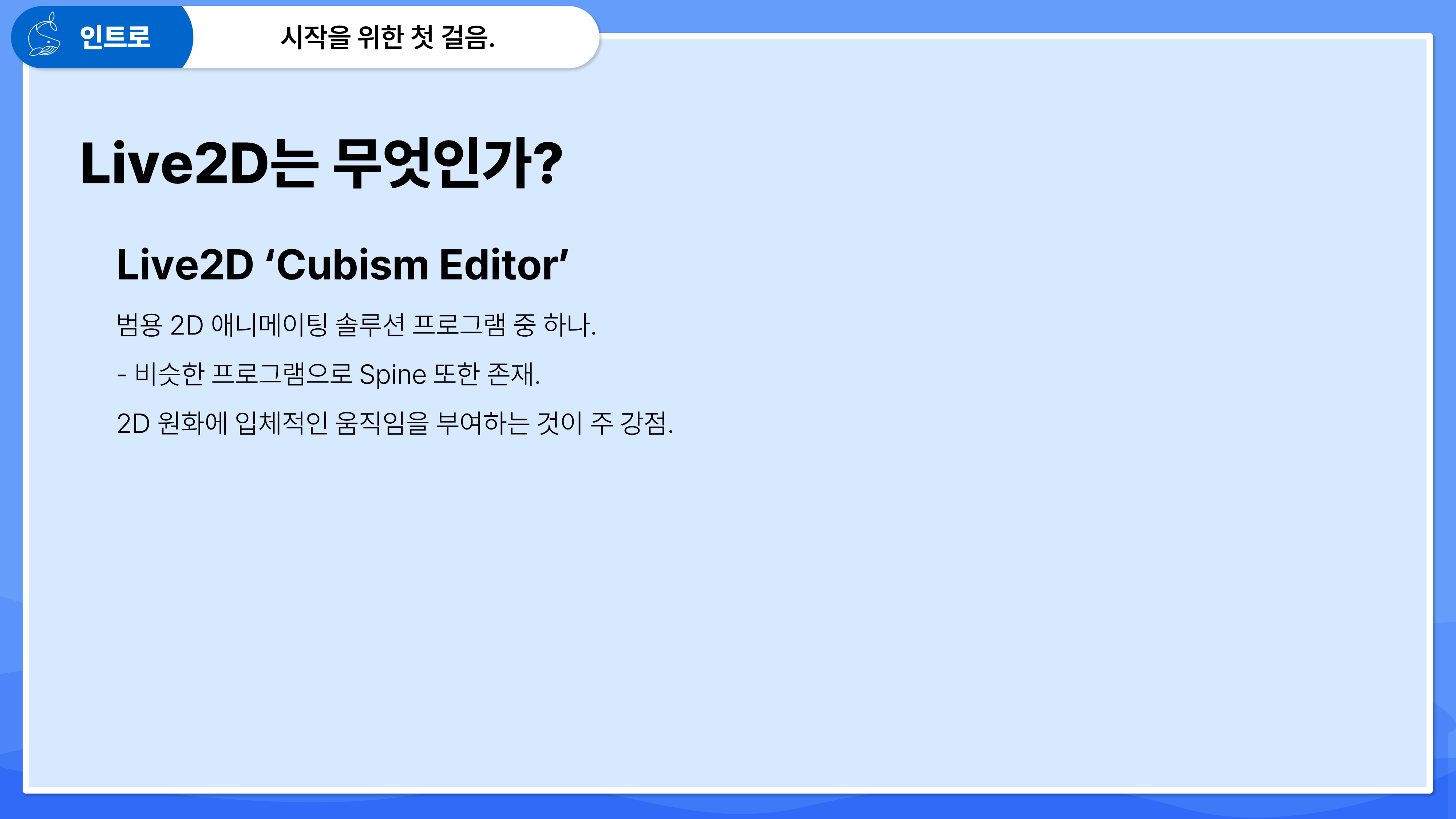 이번 강의는 Live2D를 입문하는 초보자를 위한 안내서라는 타이틀을 가지고