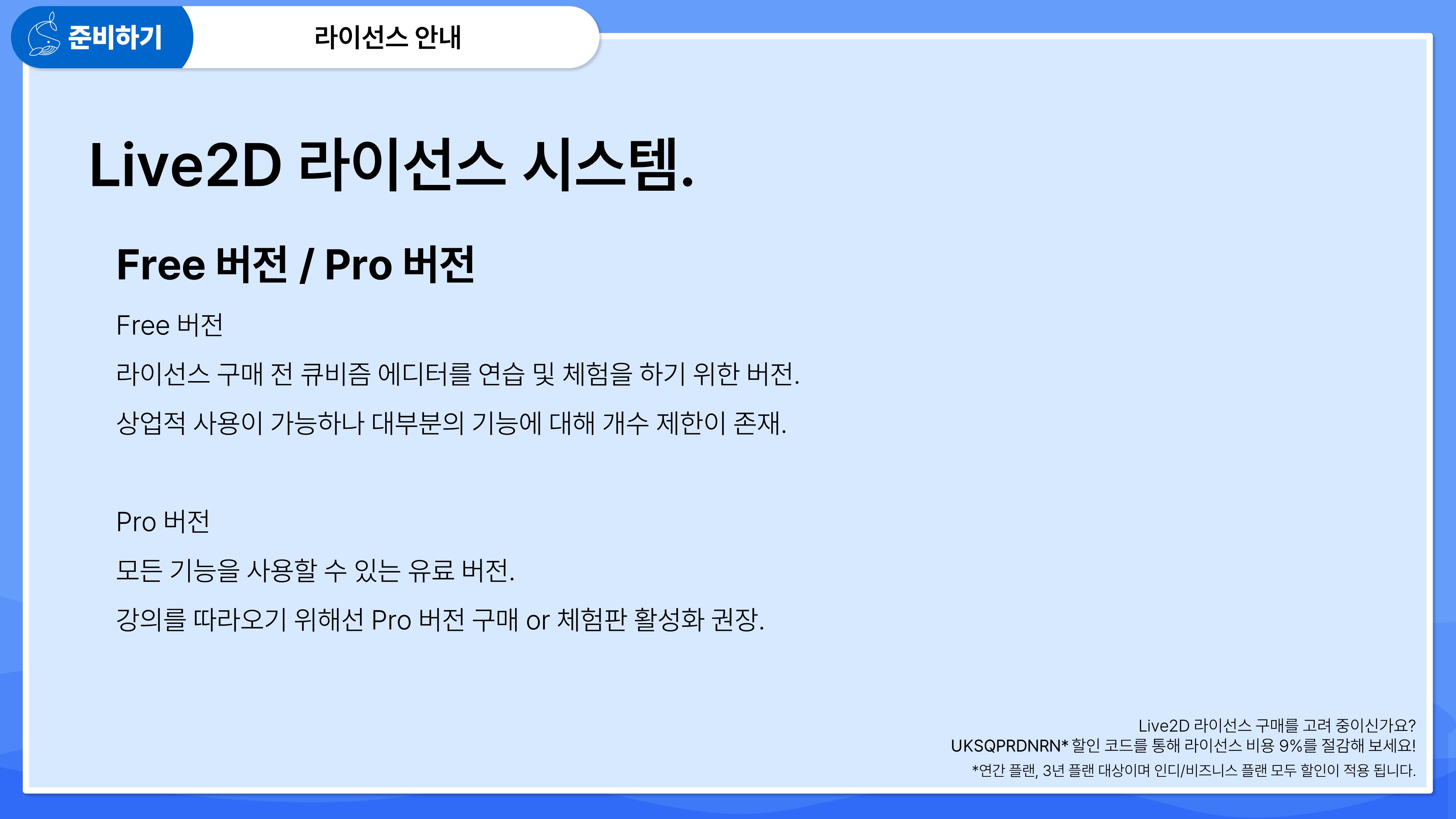 이번 편의 마지막으로 Live2D의 라이선스에 대해서 안내해드리겠습니다.