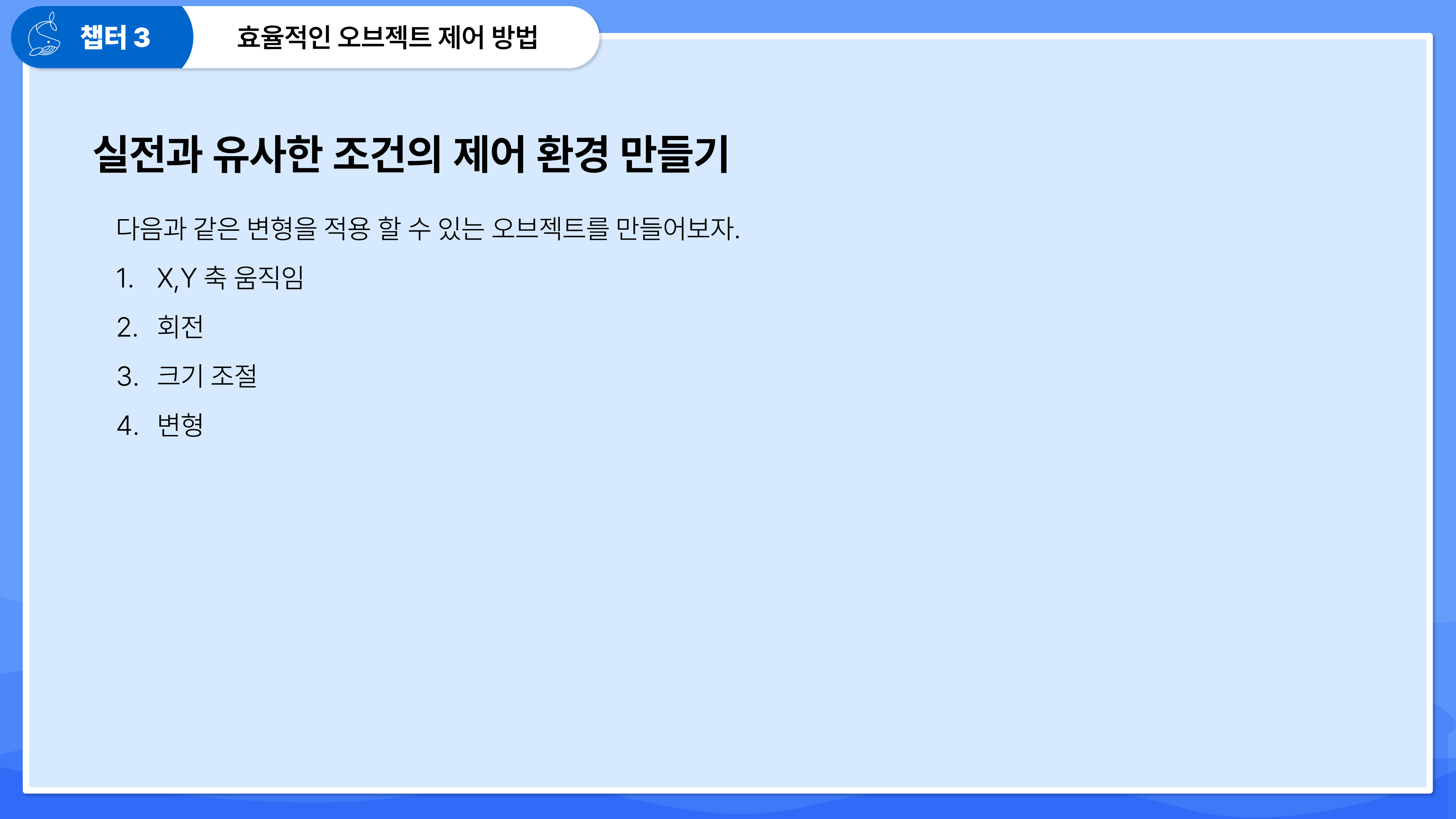 실제로 오브젝트를 제어해 보도록 하겠습니다.