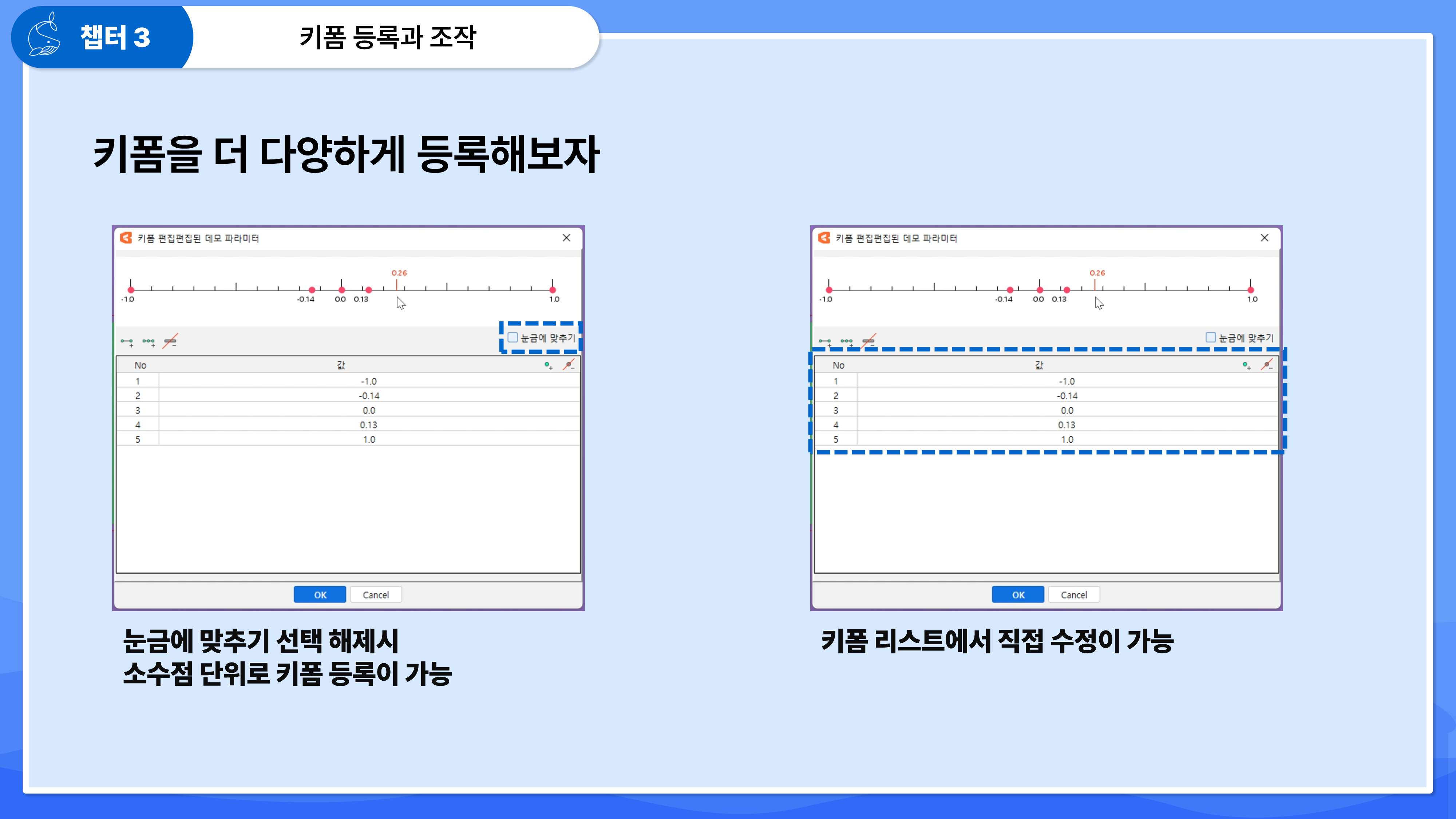 원하는 경우 키폼을 소수점 단위로 등록이 가능합니다.