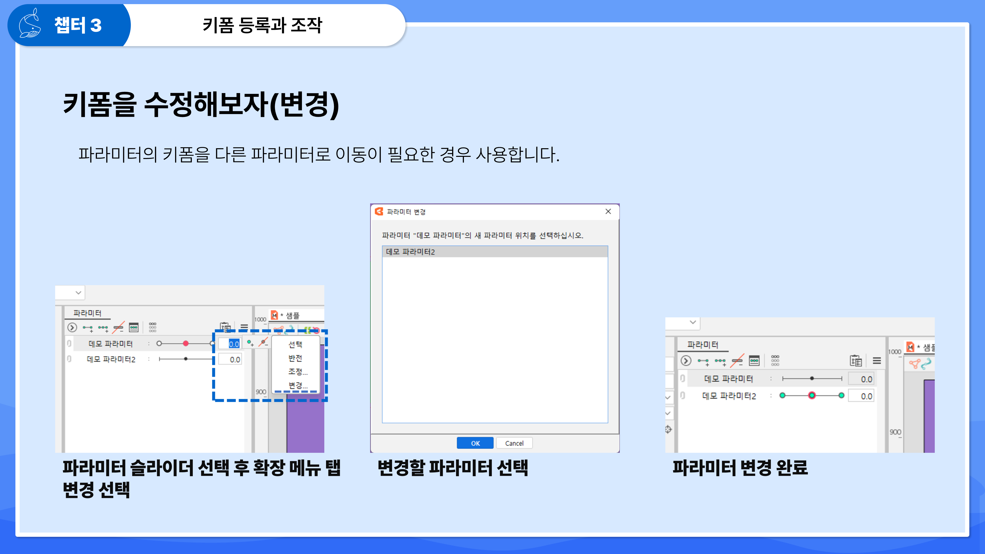 파라미터에 키폼 등록과 수정 그리고 변형을 하는 방법을 알아보았으니