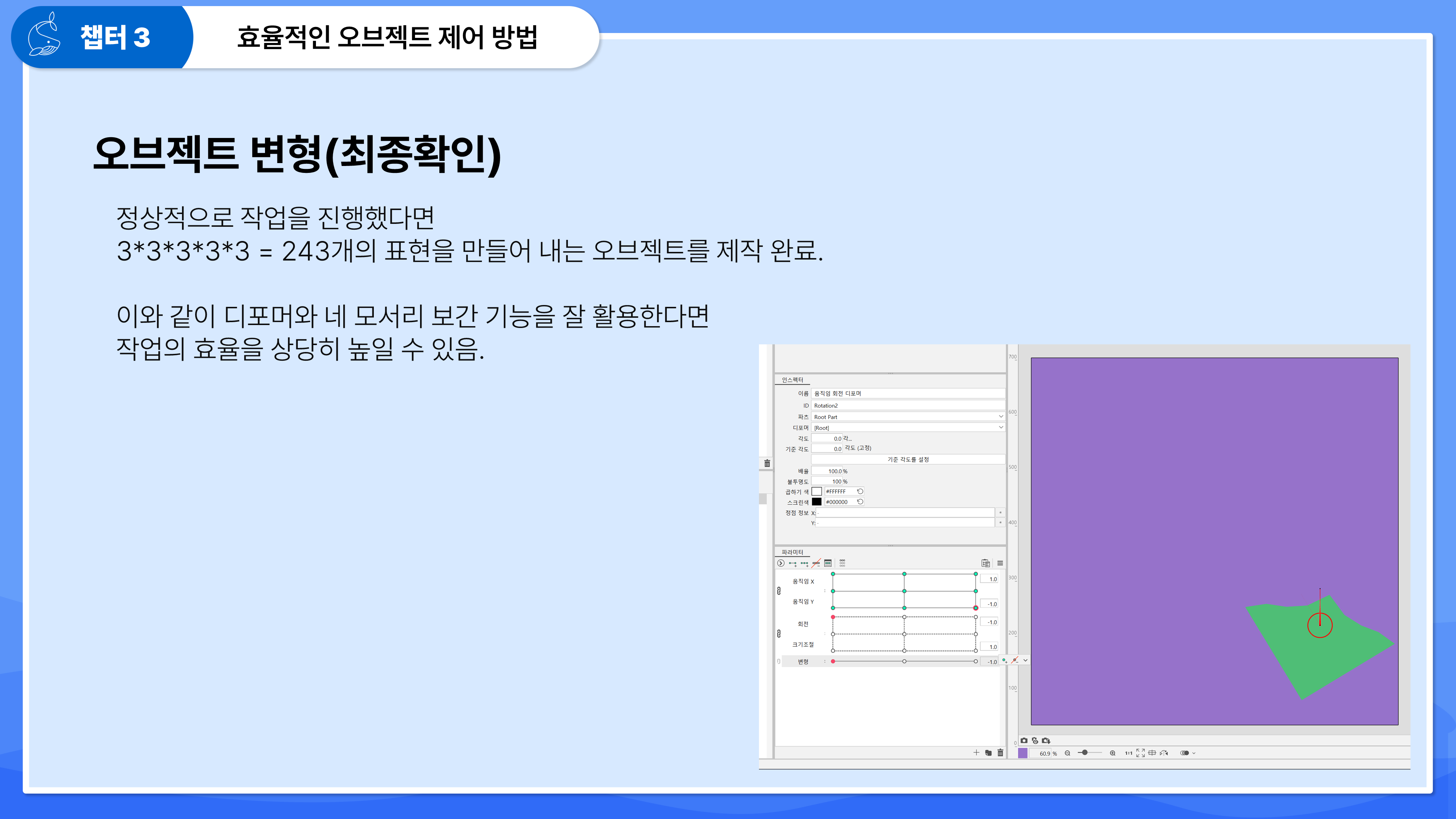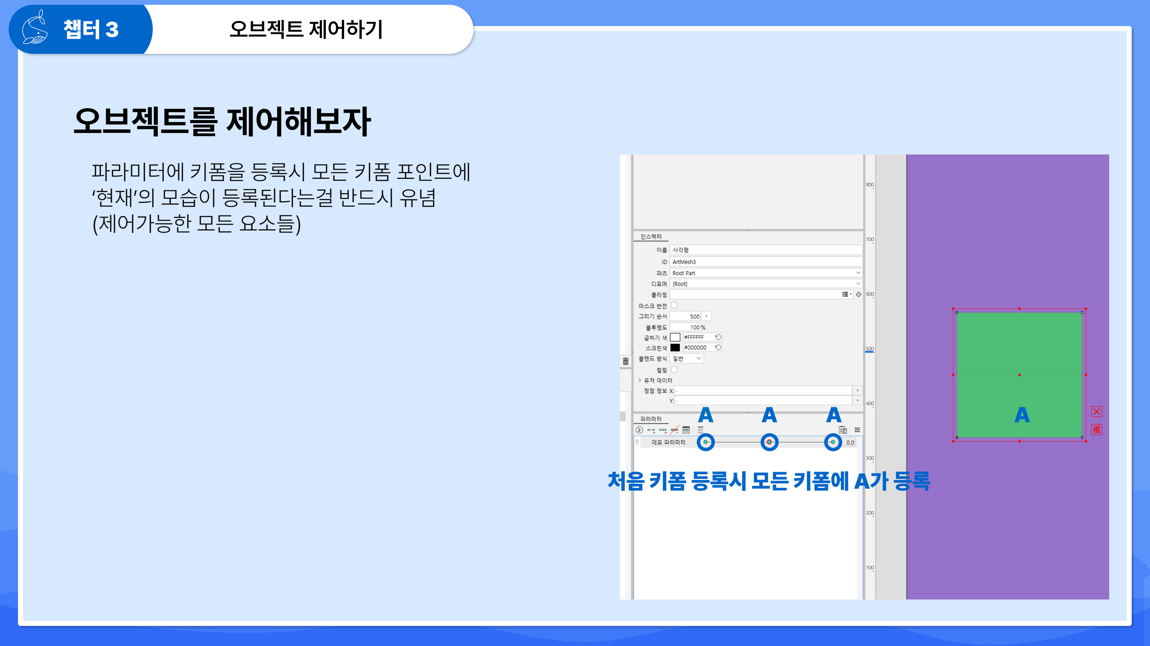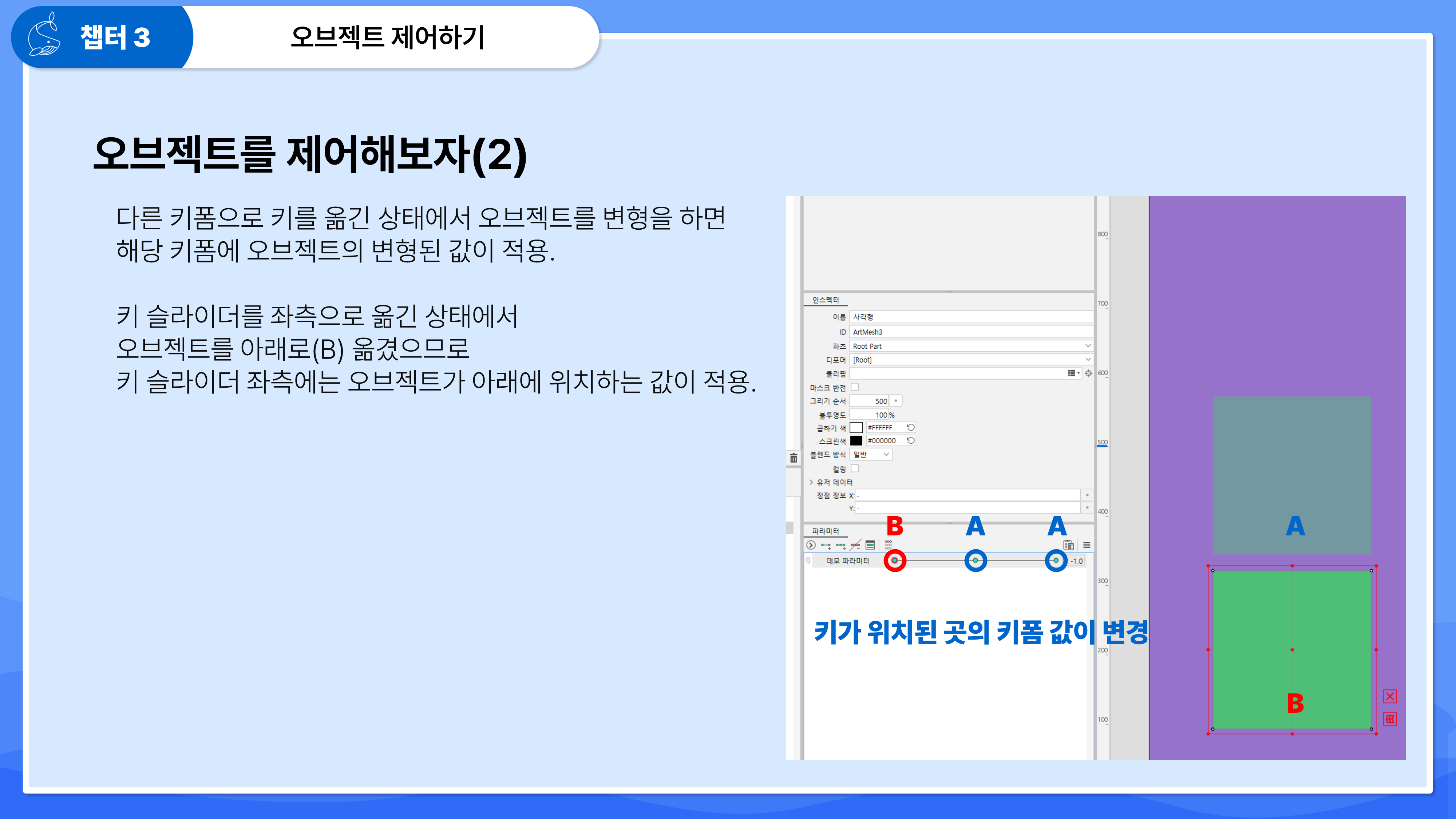 키폼 등록과 조작하는 방법을 알아보았으니 본격적으로 오브젝트를 제어해 보도록 하겠습니다.