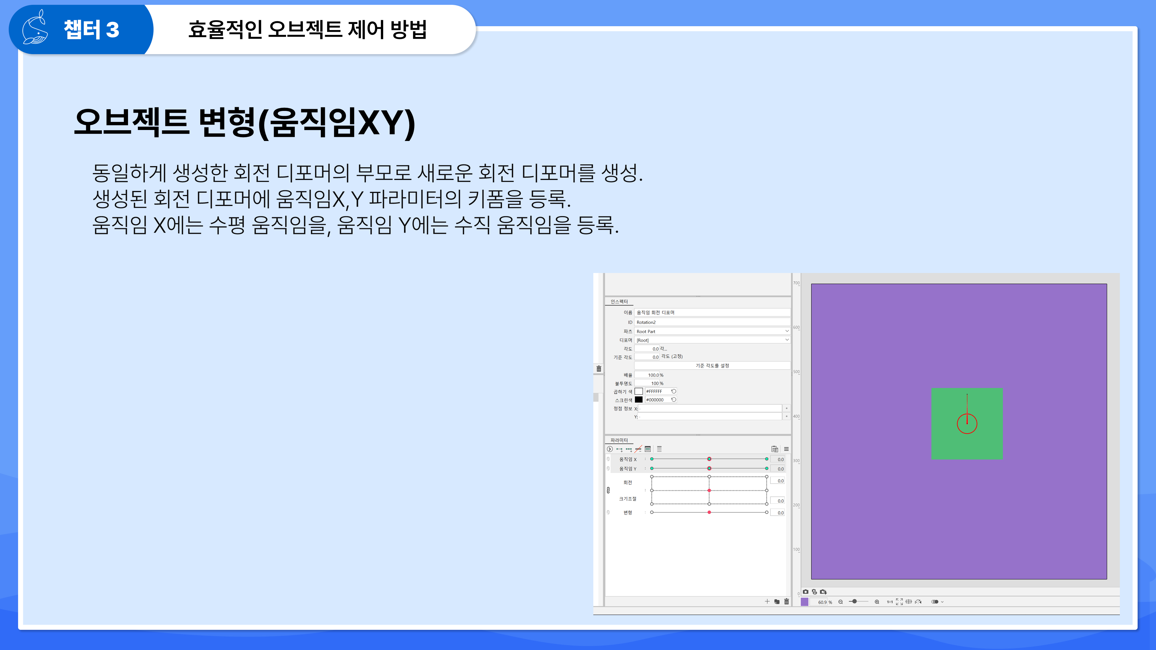 변형을 원하는 오브젝트를 선택 후 해당 오브젝트를 제어할 파라미터를 더블클릭합니다.